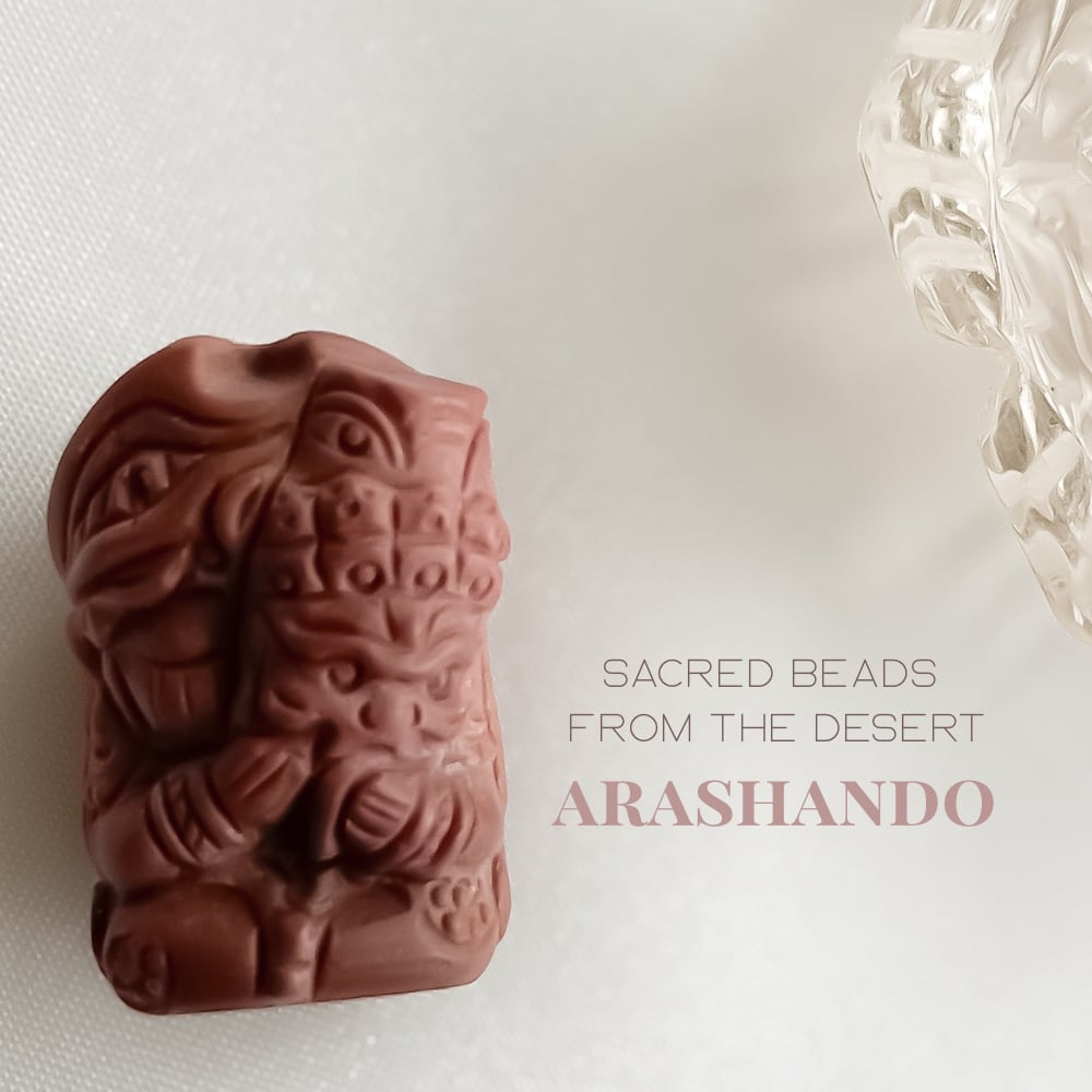 アラシャン瑪瑙 ザキラム彫刻ビーズ – チベットの祈りと金運の女神