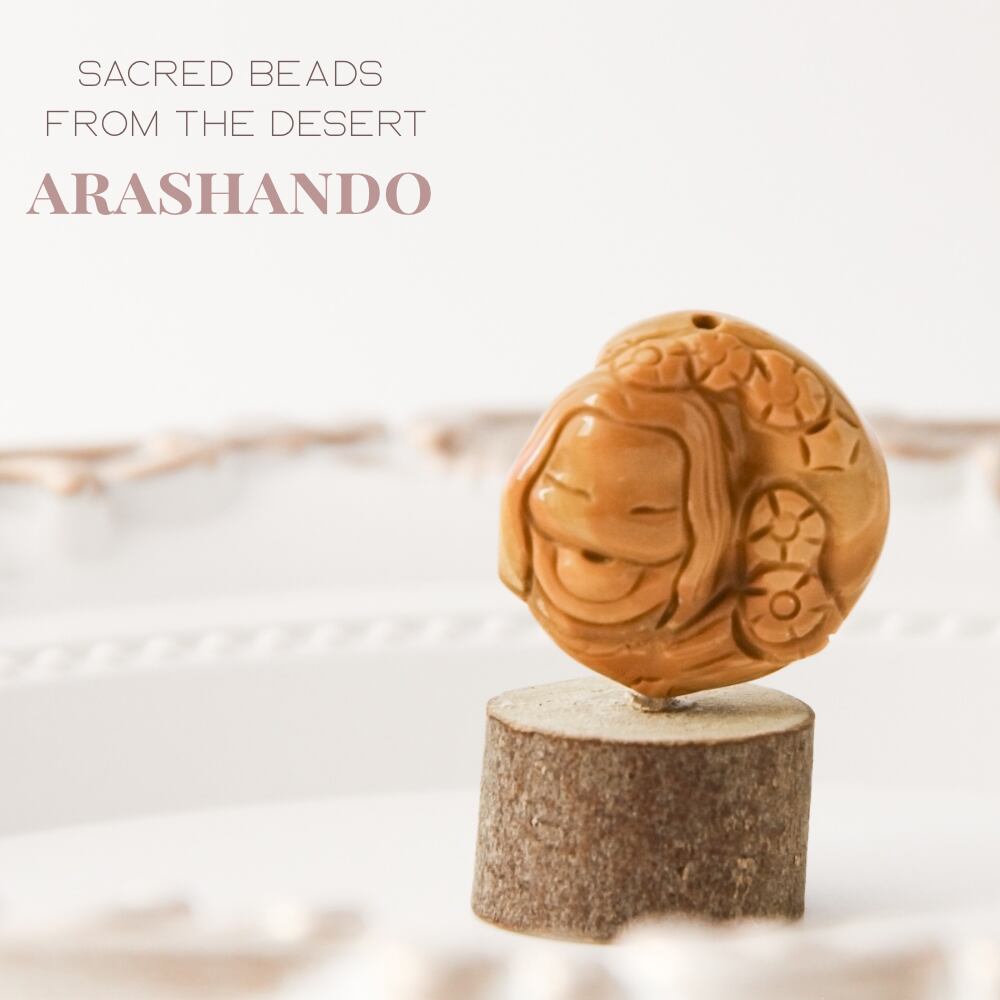 モンゴルの地で生まれた天然石「アラシャン瑪瑙」に、美しく繊細な人魚の姿を彫り込んだ一点もののビーズです。
