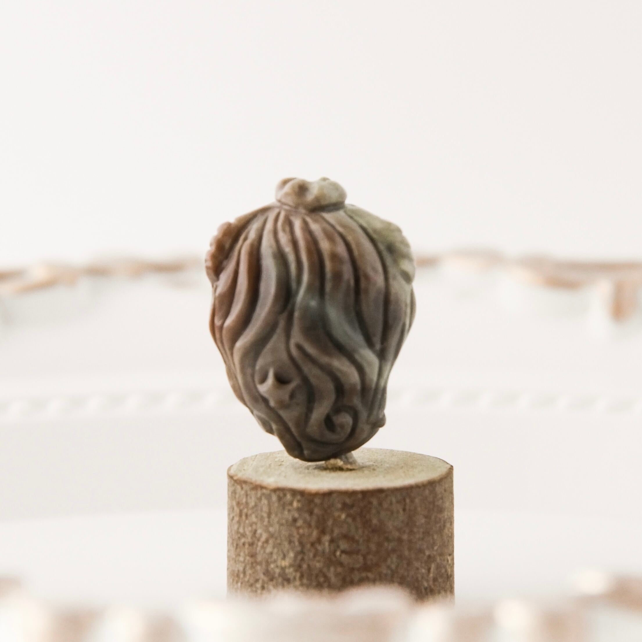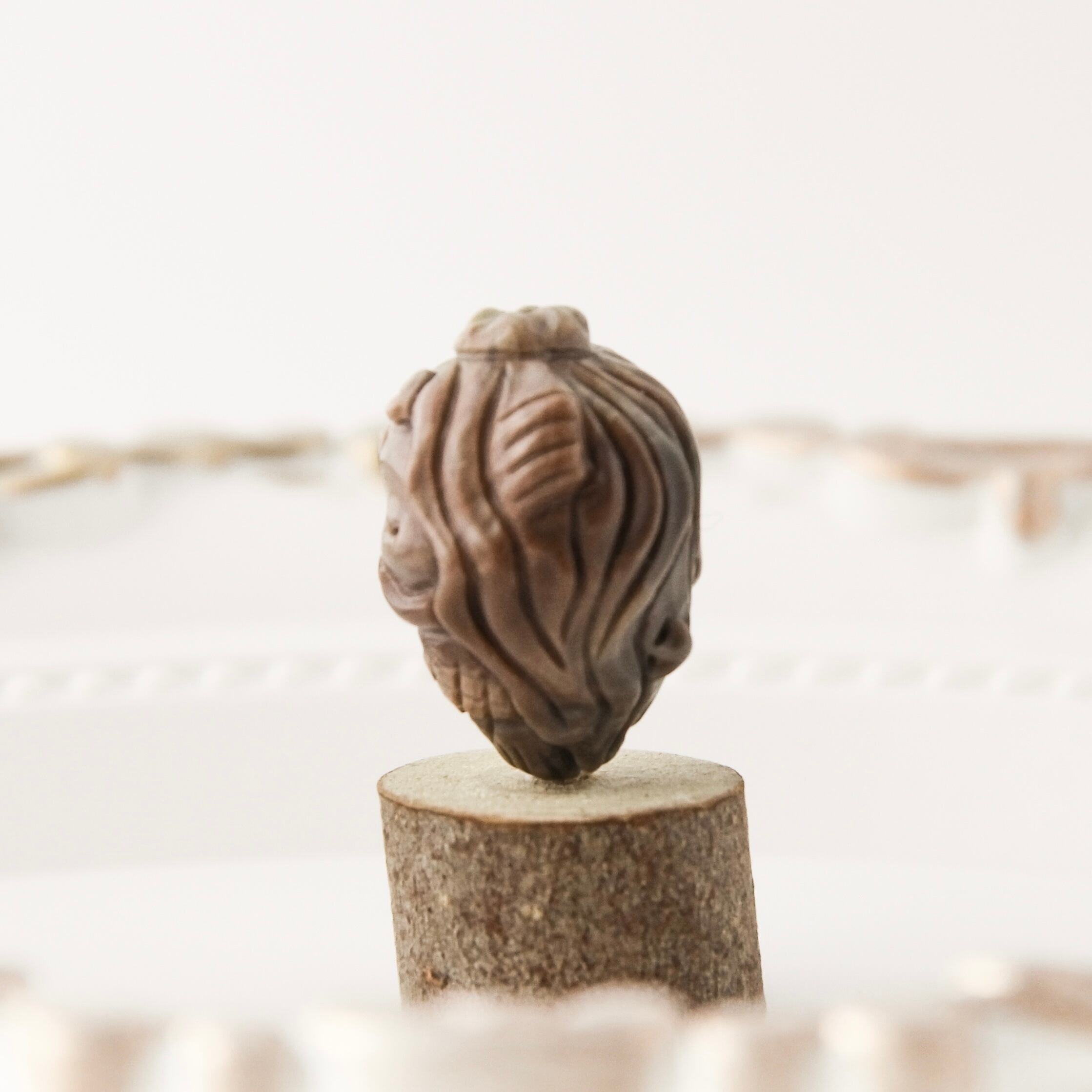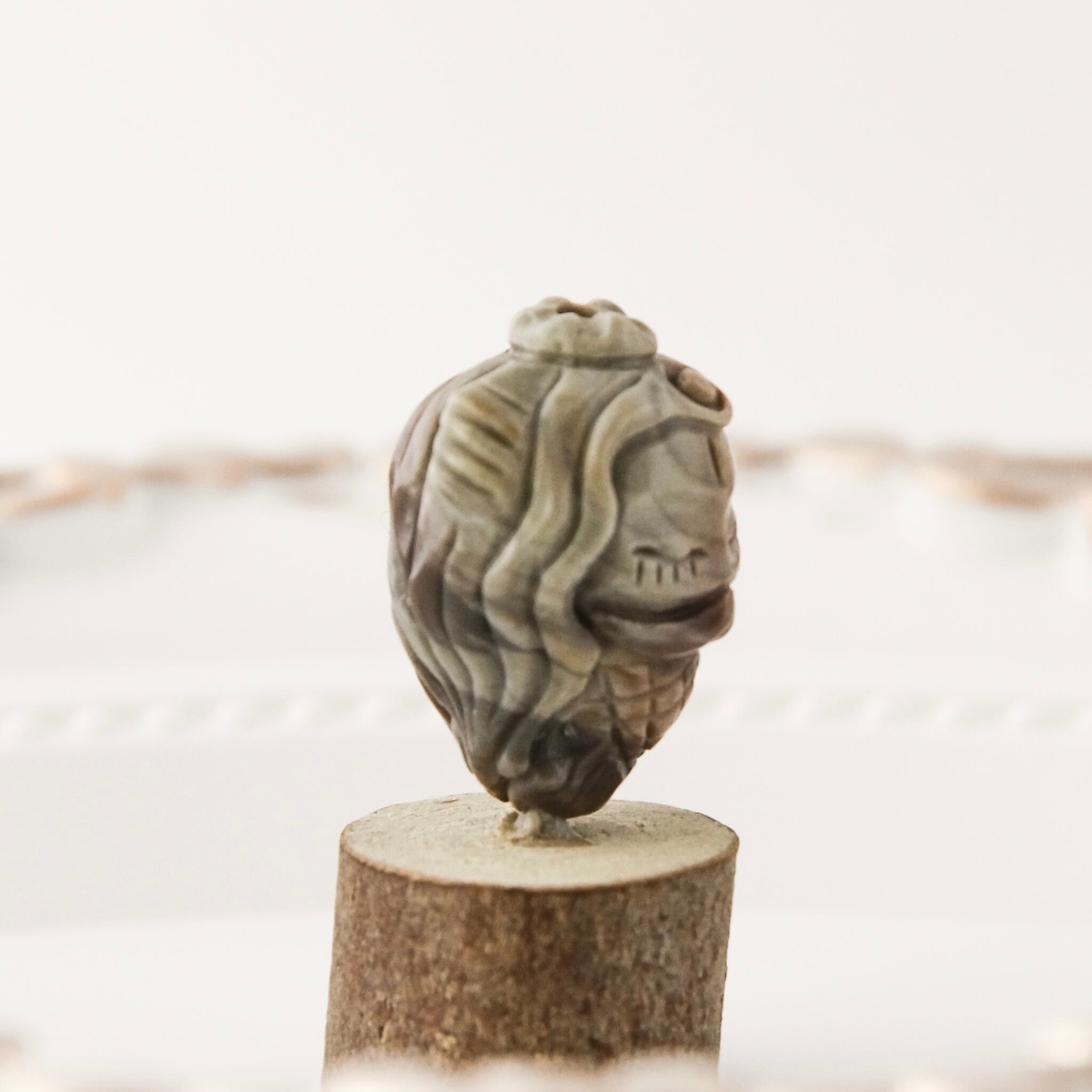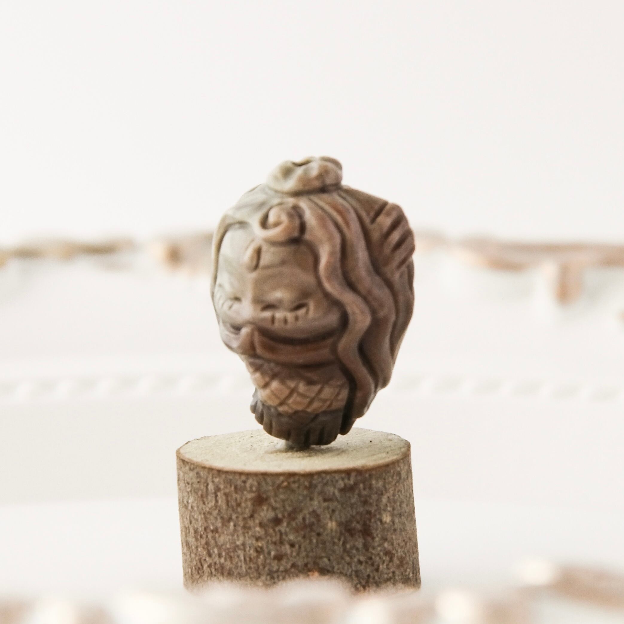 モンゴルの大地が育んだ天然石「アラシャン瑪瑙」に、そっと目を閉じた人魚の姿を彫り込んだ、神秘的なビーズです。