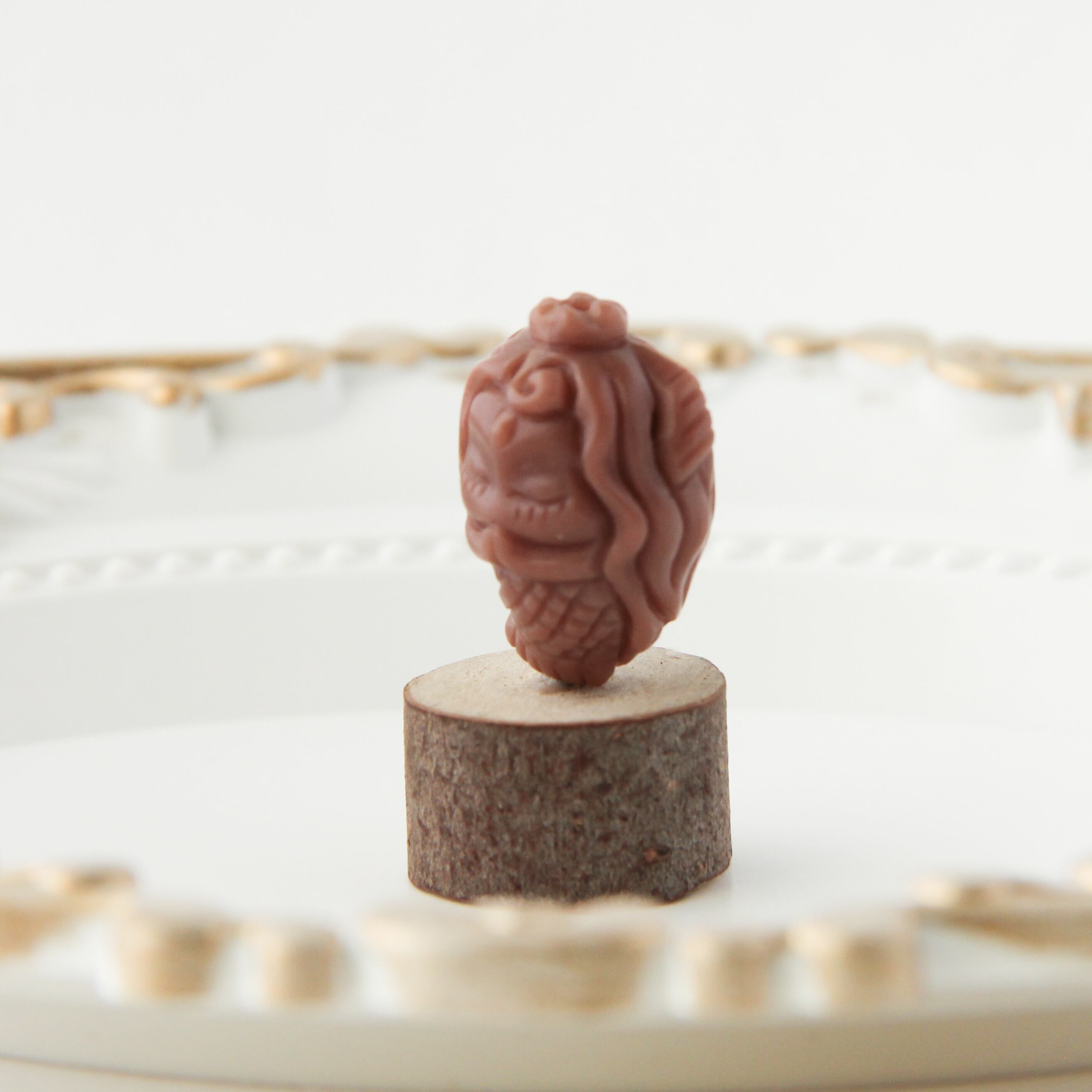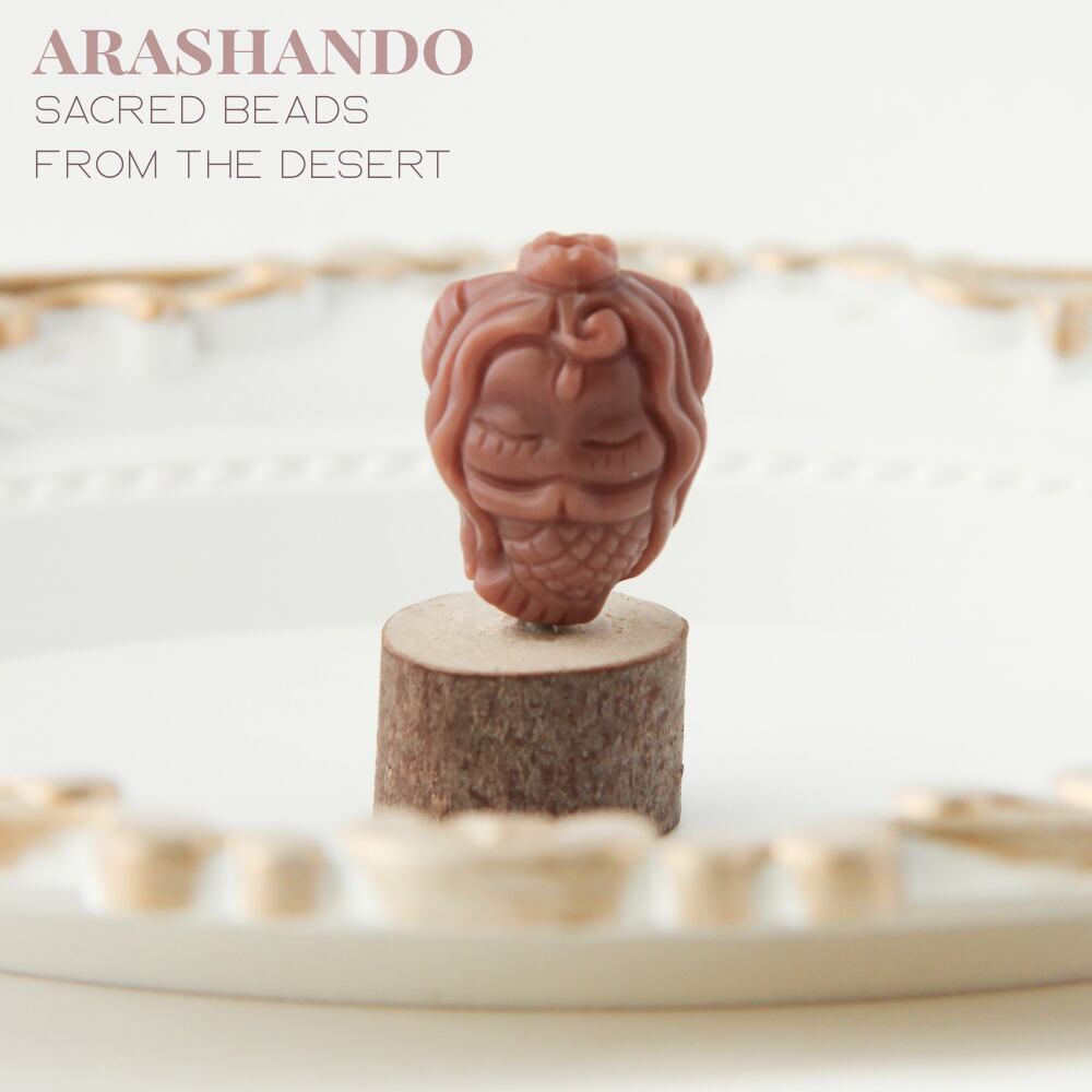 モンゴルの大地で育まれた天然石「アラシャン瑪瑙」の、人魚の姿を彫刻したビーズです。深紅の色合いが、まるで砂漠の中に眠る叡智のように神秘的な雰囲気を醸し出します。