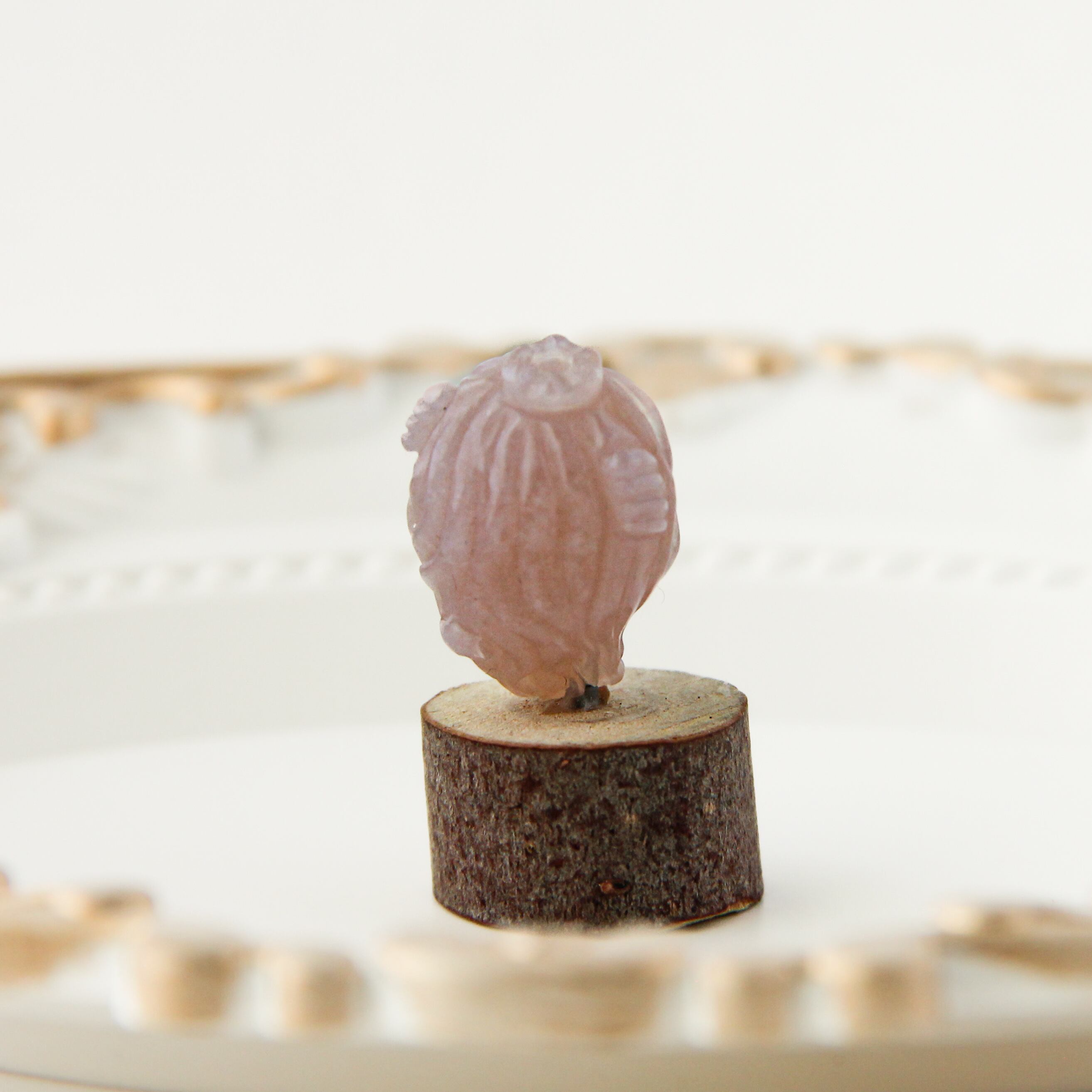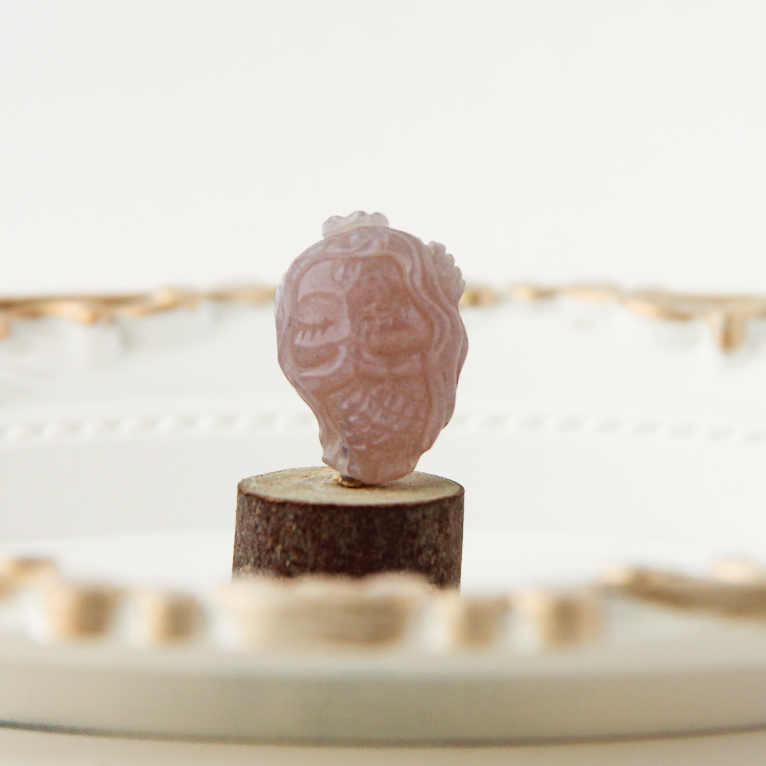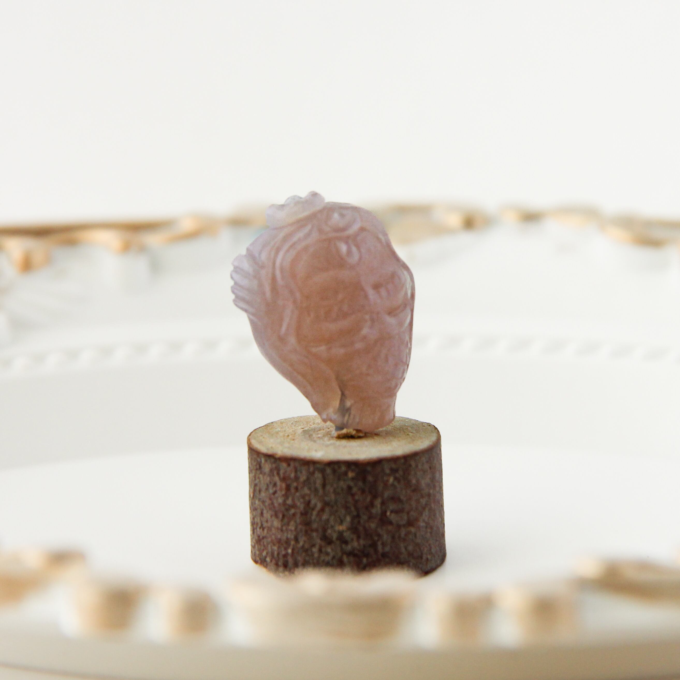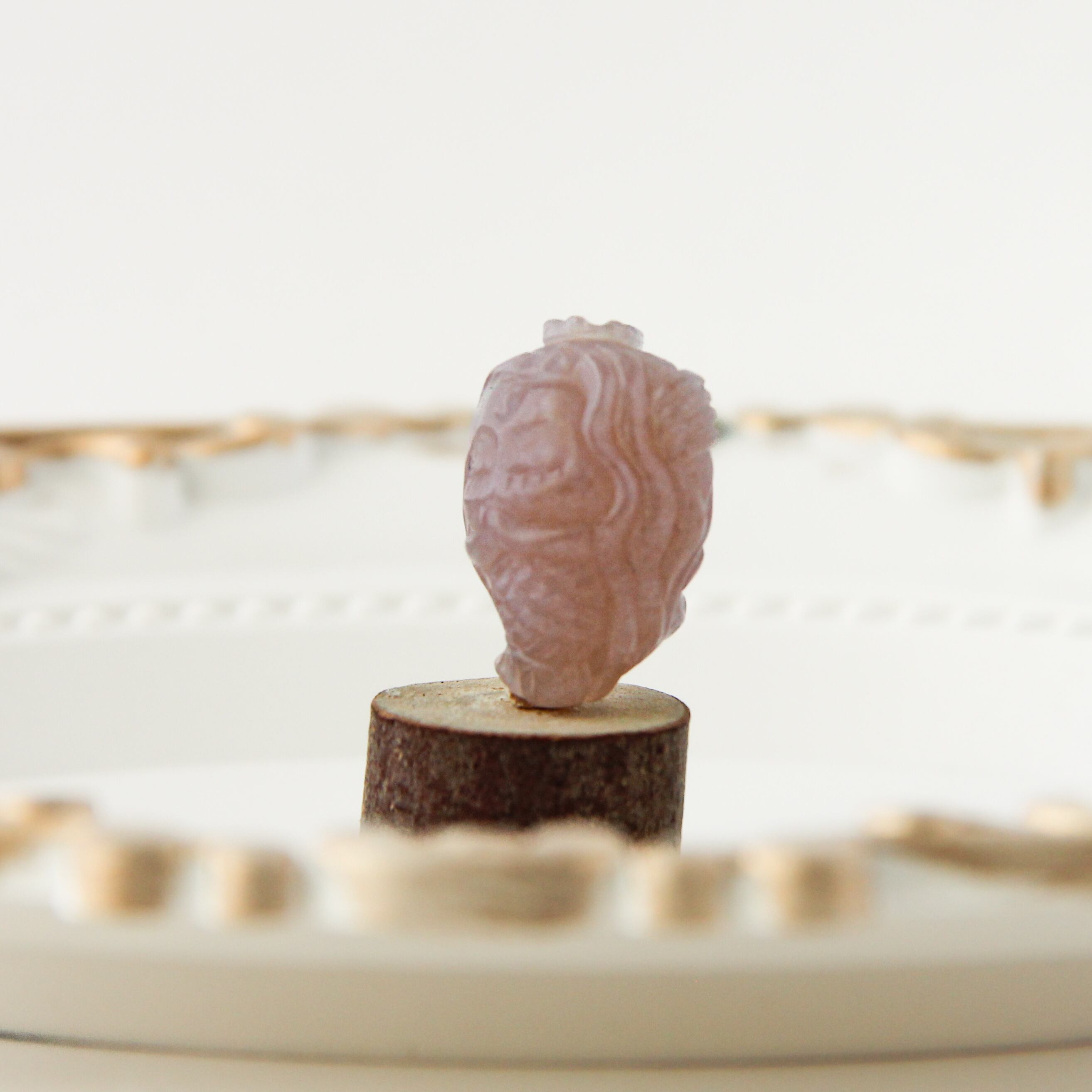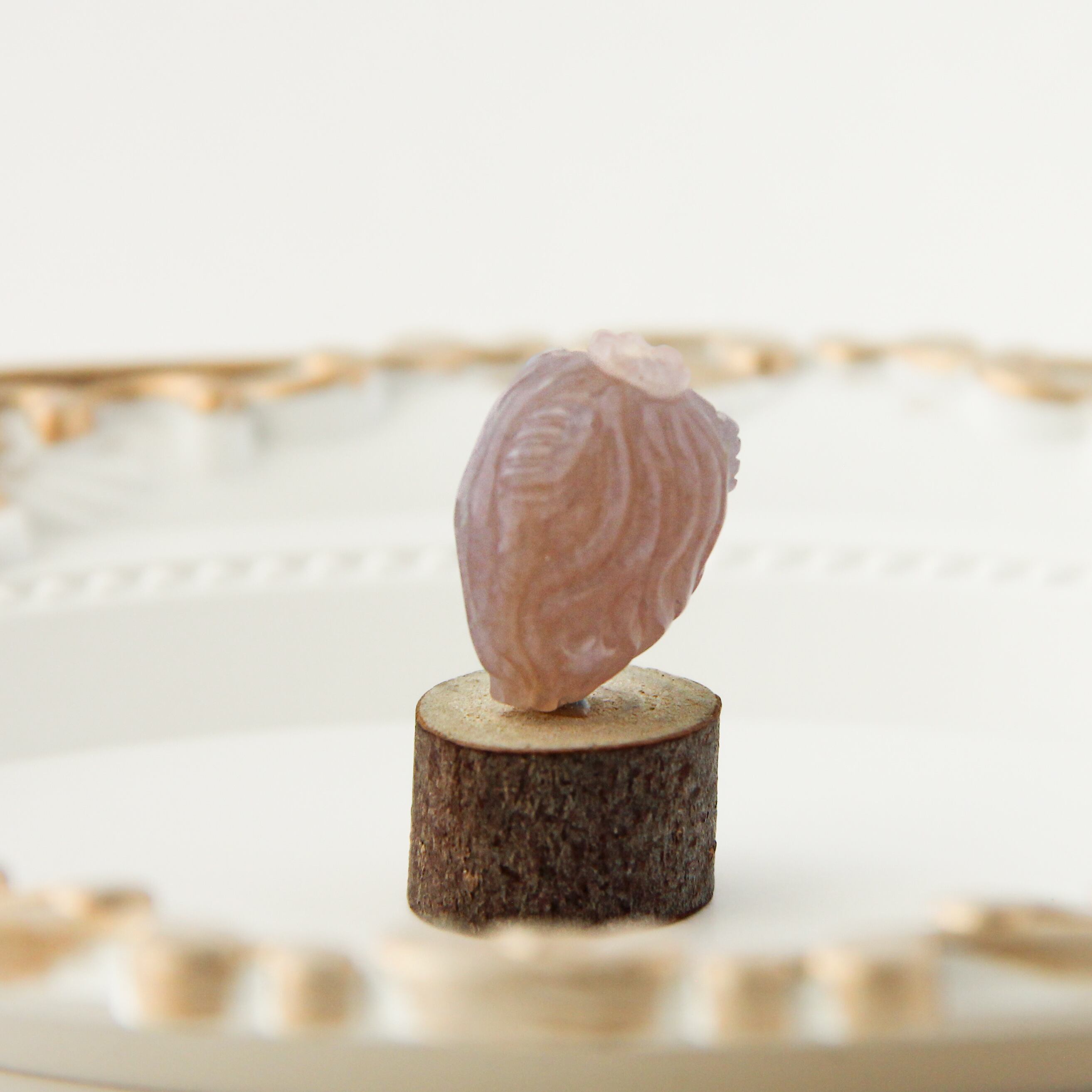 その柔らかなピンク色合いは、幻想的な砂漠の風景を思わせる暖かさで、あなたの創作に独自の深みを与えてくれることでしょう。流れる髪の彫刻や繊細な装飾は、まるで静かな海の歌声を聴いているかのような心地よさを感じさせます。背面にも丁寧なデザインが施されており、どの角度から見ても美しさを楽しむことができる、一点ものの特別なアイテムです。