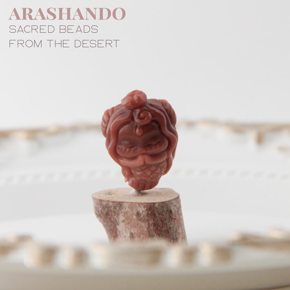 モンゴルの自然が育てた美しい「アラシャン瑪瑙」で作られた、人魚を象る彫刻ビーズです。この「夢見る砂漠の眠り姫」は、穏やかな表情と流れるような髪が魅力的で、見る人に心の安らぎをもたらします。
