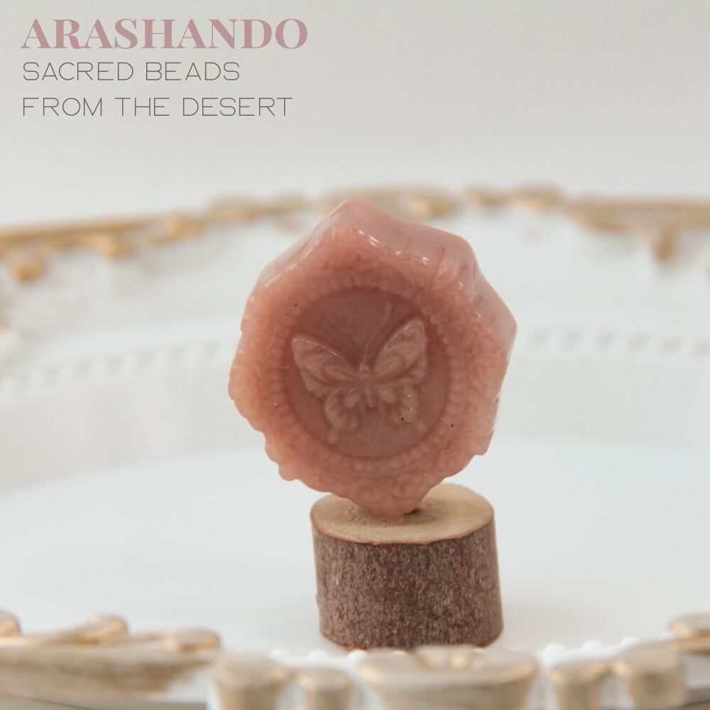 アラシャン瑪瑙 蝶々彫刻ビーズ – そっと寄り添う桃花の精霊