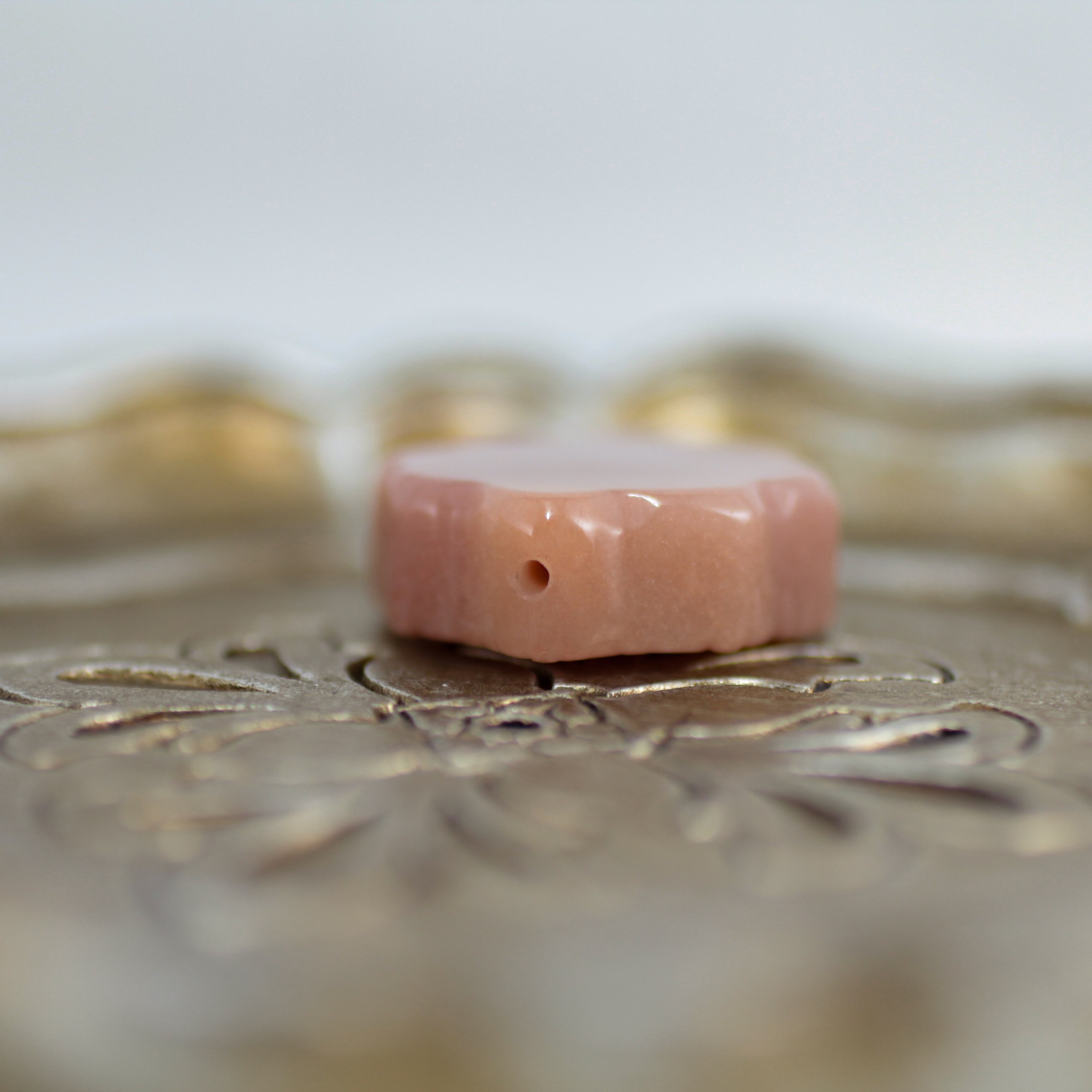 優しいくすみピンクのアラシャン瑪瑙に、繊細な蝶のモチーフを浮かび上がらせた、存在感のある彫刻ビーズ。