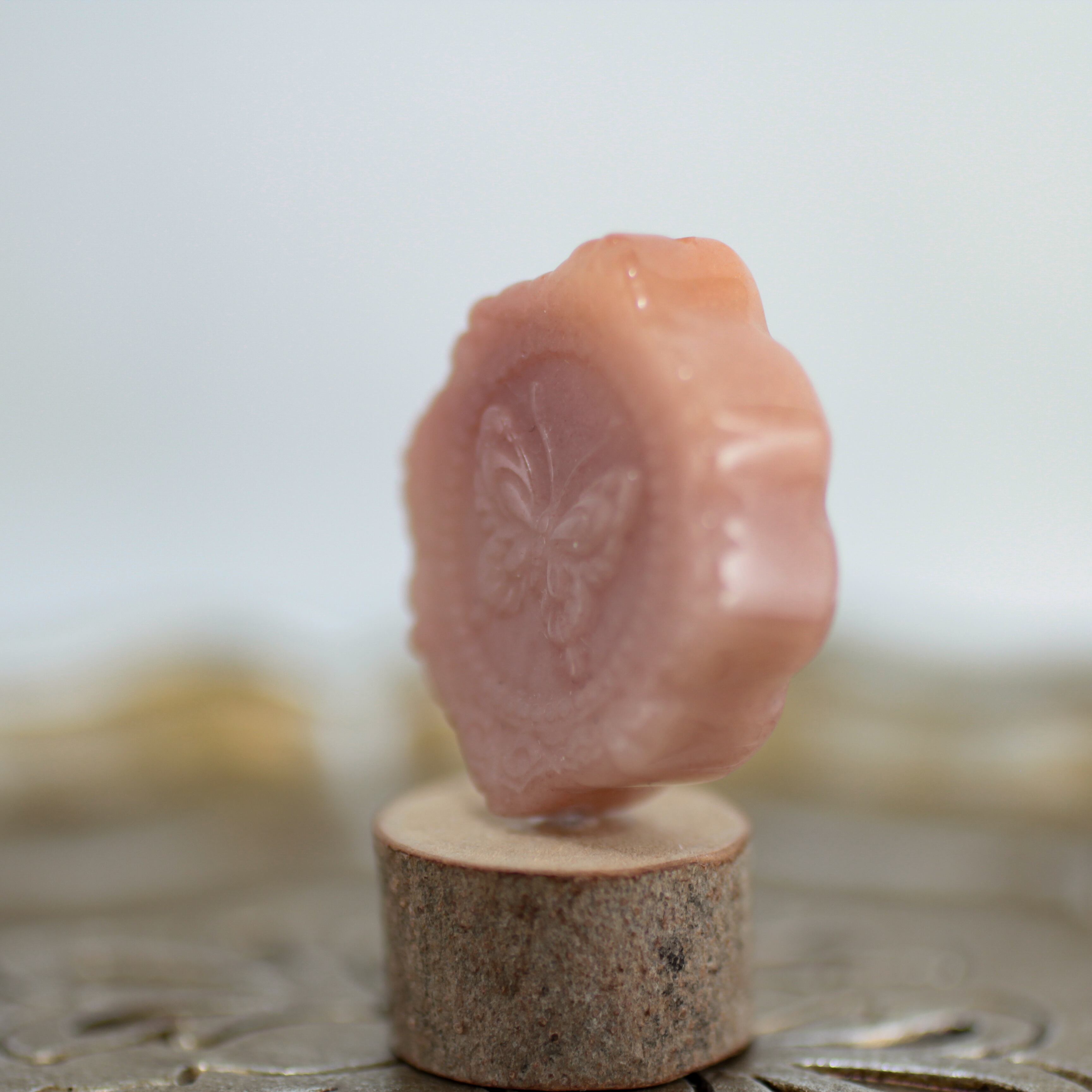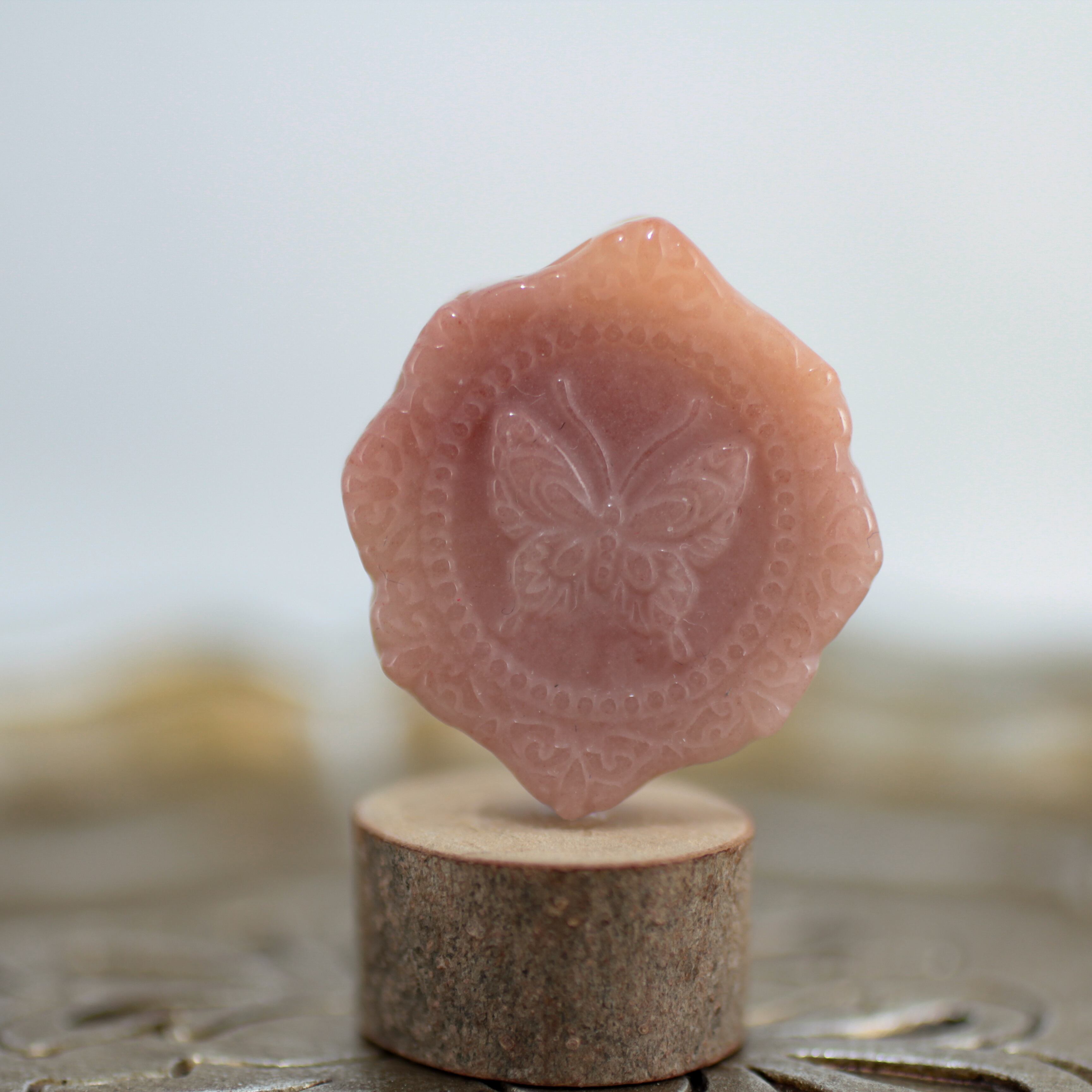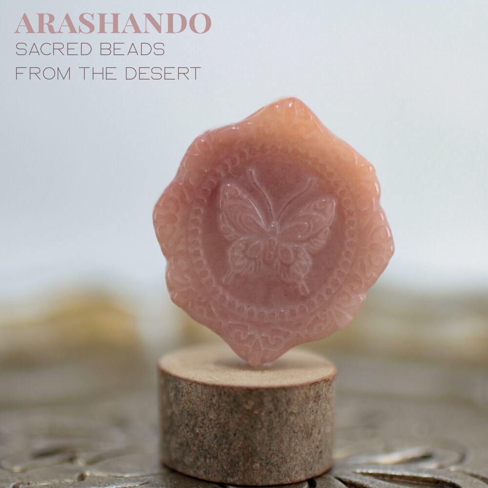 アラシャン瑪瑙 蝶モチーフ彫刻ビーズ – くすみピンクに舞う繊細な守護蝶