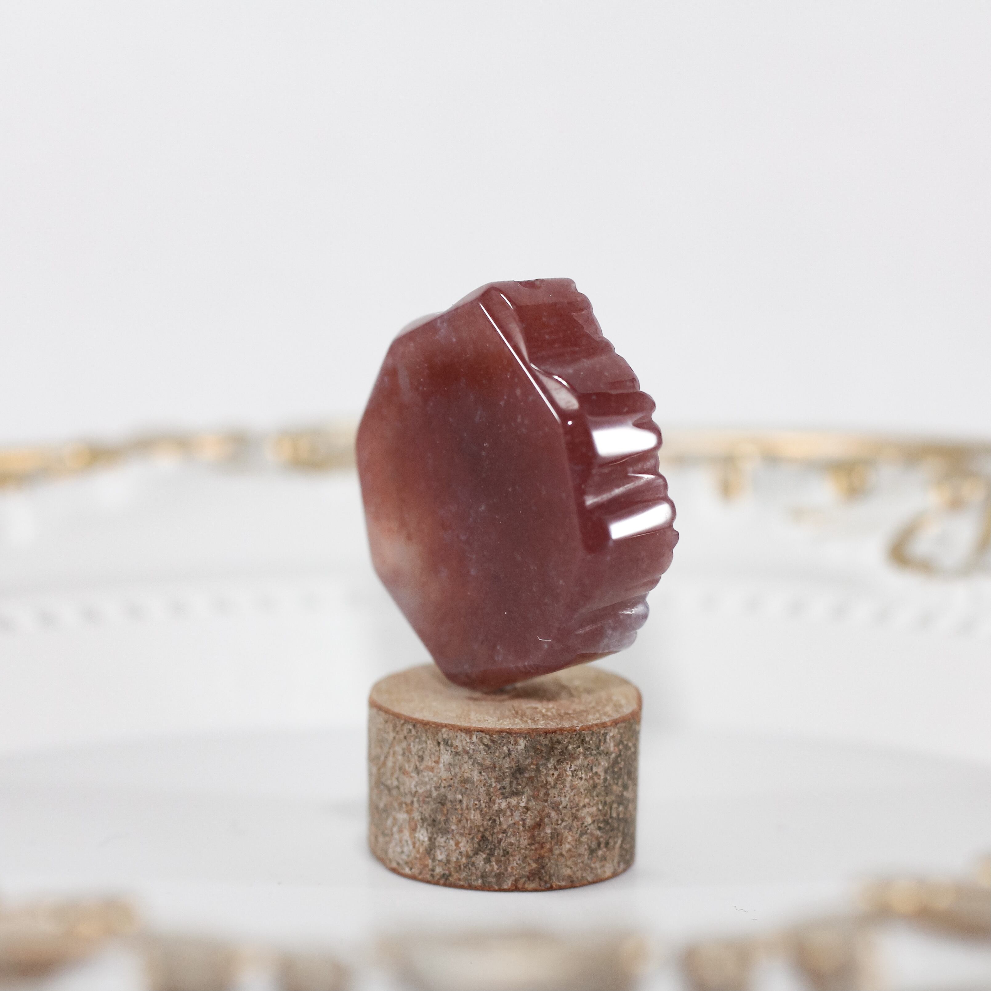 アラシャン瑪瑙は、モンゴルのアラシャン地方で産出される希少な天然石。やわらかな発色とミルキーな濁りが特徴で、「安定」や「安心」をもたらす石として知られています。精神のバランスを整え、心の平穏をサポートするといわれています。