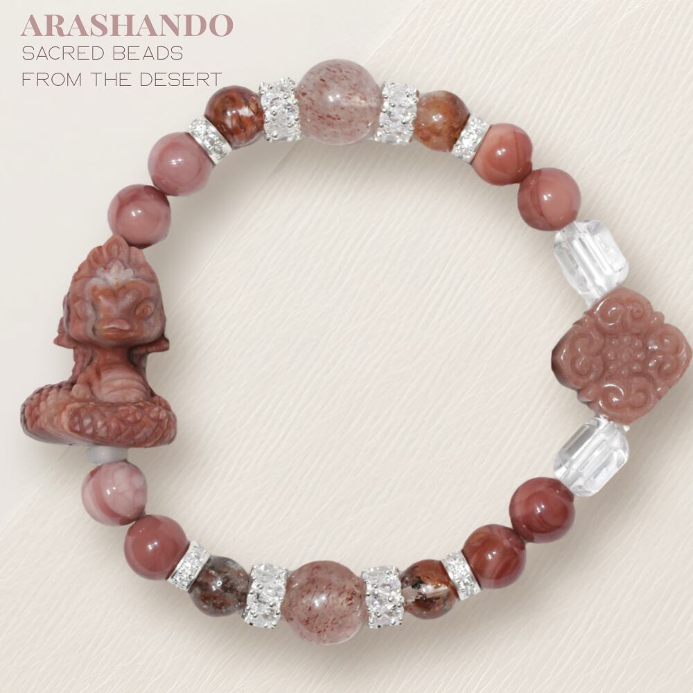 【送料無料】アラシャン瑪瑙 ティアラコブラ彫刻ビーズ- ピンクマーブルの守護と繁栄ブレスレット
