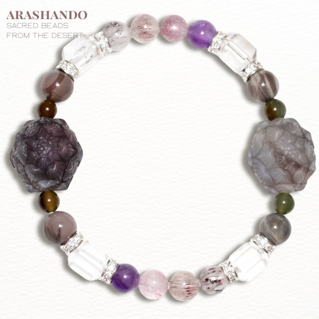【送料無料】アラシャン瑪瑙 人魚彫刻 - ムーンストーン ストロベリークォーツ クリスタル 天然石 ブレスレット